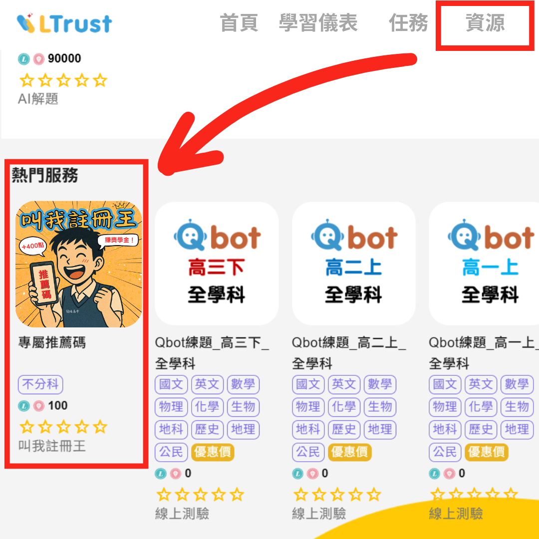 1. 到「資源→熱門服務」購買專屬推薦碼